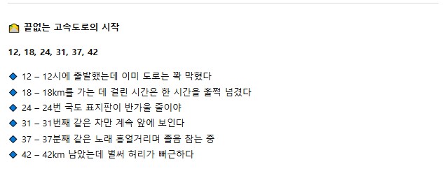 🔹 42 – 42km 남았는데 벌써 허리가 뻐근하다