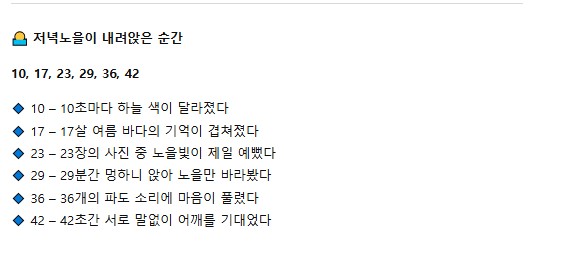 🔹 17 – 17살 여름 바다의 기억이 겹쳐졌다